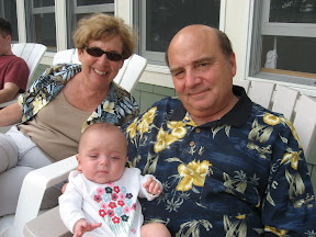 Ah, back from vacation! We went to Northern Michigan to spend 8 days with Josh's family...hanging out at his parents' cottage on a beautiful lake. It was our first traveling/vacation experience with a baby. I gotta say, she is a trooper. She was amazing on the flights. Barely made a peep on our flight to MI (granted, we did take the red eye so she slept almost the entire time). And on our flight back, she was an angel...(and then the last 20 minutes came and she was getting hungry and it took eons to get a glass of water from the flight attendant. Just how many times do I have to hit the call button before I get some help?